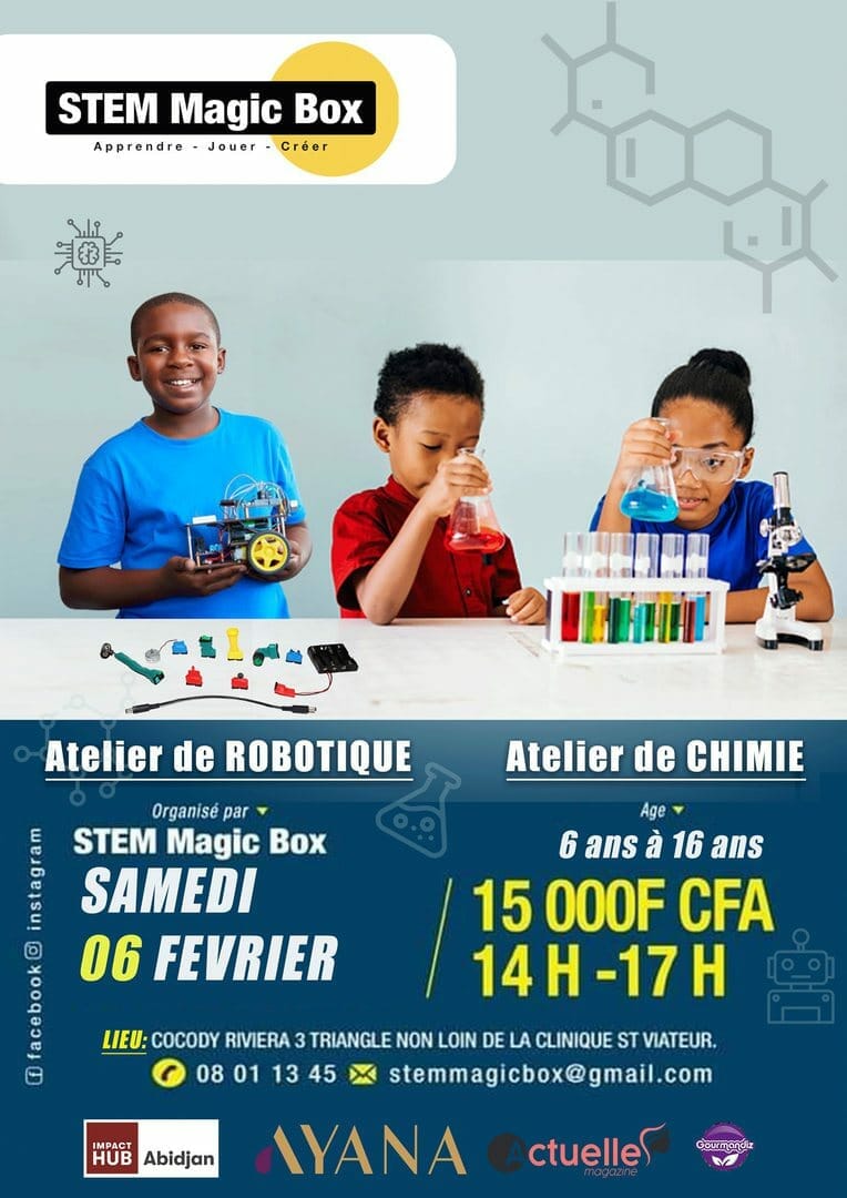 STEM Magic Box organise des ateliers de robotique, chimie, Codage et d’informatique pour les enfants à partir de 6ans. Et la vente de Box et outils pour les activités en STEM ( Science-Technology-Engineering-Mathematics).